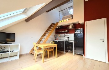 Très joli studio meublé au 3ème et dernier étage d'une maison typique bruxelloise du quartier européen avec vue sur les jardins. Séjour avec canapé-lit, TV et coin à déjeuner, cuisine hyper équipée avec toute la vaisselle, salle de douche, lave-linge. Chambre à coucher en mezzanine (6 m²) avec lit 1 personne. Charges mensuelles forfaitaires de 230 comprenant tout : l'eau, le chauffage, l'électricité, Wi-Fi, TV par câble et assurance abandon de recours. Libre immédiatement. Les locations de courte durée (pour quelques mois) ne sont pas acceptées. Libre immédiatement.